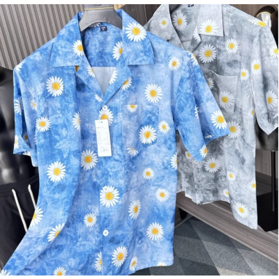 Daisy vacation style! Summer men's floral printed short sleeves