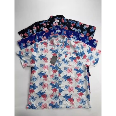 European and American men's outdoor quick drying loose short sleeved shirt with Cuban collar goldfish print shirt
