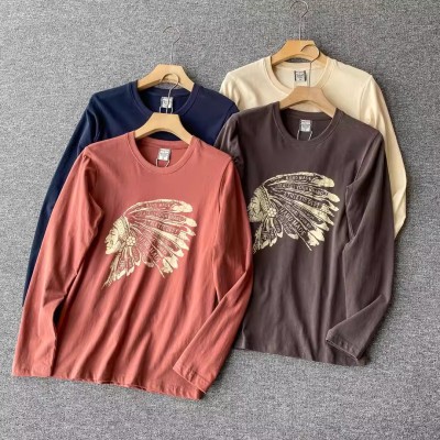 Good product! Autumn men's all cotton matte washed printed round neck long sleeved T-shirt