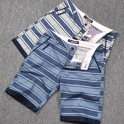 Beach style striped men's casual pants, European and American wide stripe color woven shorts, summer
