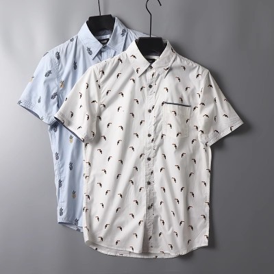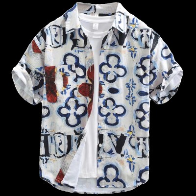 Washed all cotton fashionable casual printed short sleeved shirt for summer