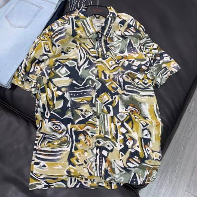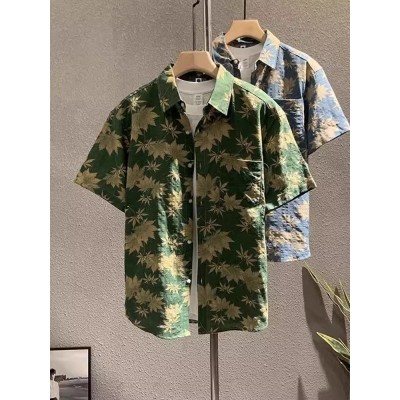 Summer men's mid sleeved heavy craft pattern printed shirt