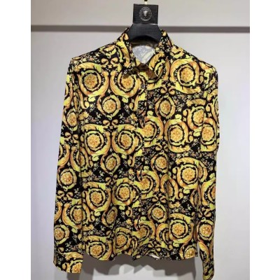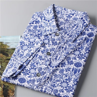 New men's Baroque trend printed casual loose court long sleeved floral shirt