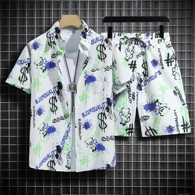 Summer short sleeved graffiti flower shirt and shorts set