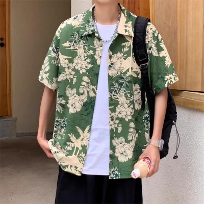 Classic plant floral short sleeved floral shirt
