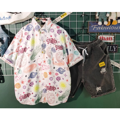 Korean casual loose fit and handsome mid sleeved shirt