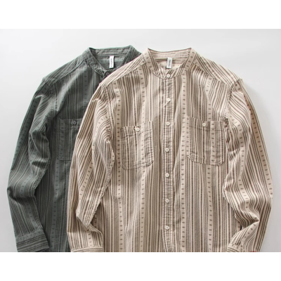 Japanese retro striped shirt men's pure cotton Hong Kong style