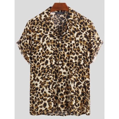European and American youth fashion short sleeved leopard print cardigan