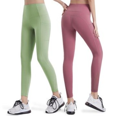 Single color double-sided soft Pilates leggings with built-in pockets