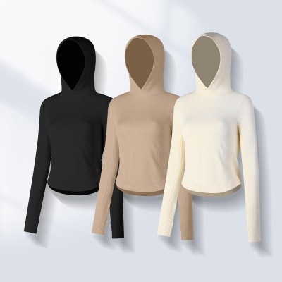 New one-piece woven hoodie! High Tech Fabric Slim Fit Yoga Sports Top