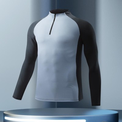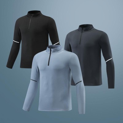 Three color men's quick drying fitness suit stand up collar half zip pullover