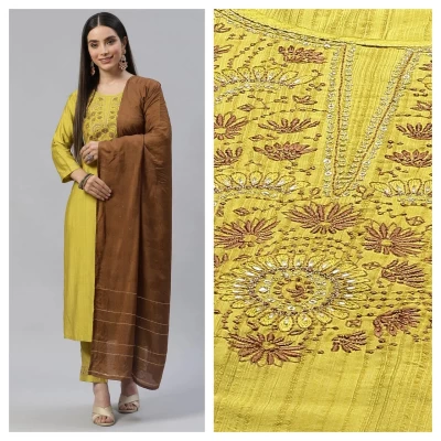 Viscose Silk with Zari Embroidery Work Kurti Pant Dupatta Set 3 Piece Kurti for Women Readymade Collections