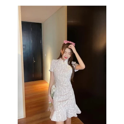 Traditional Clothing Pretty Cute Flower Puff Sleeve Ruffle Cheongsam