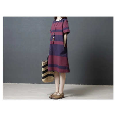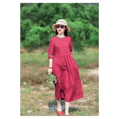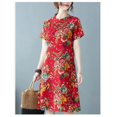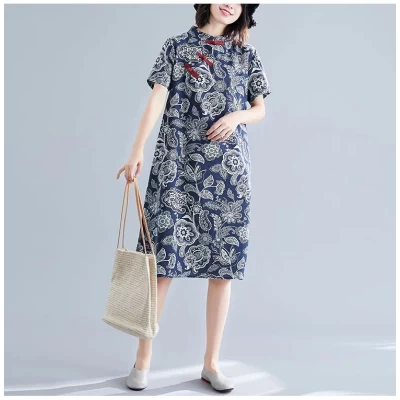 Retro Ethnic Style Women's Cotton and Linen Dress Chinese Improved Cheongsam Dress plus Size