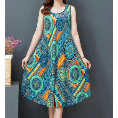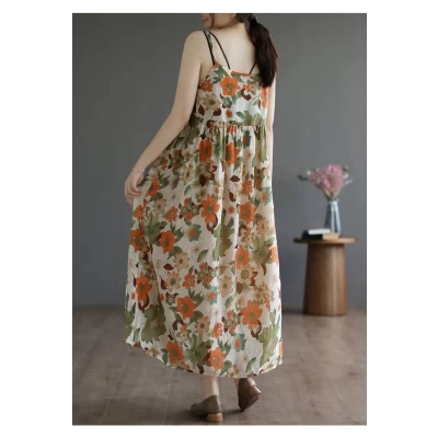 Oversized cotton silk vest dress, summer new ethnic style women's clothing, artistic retro printing